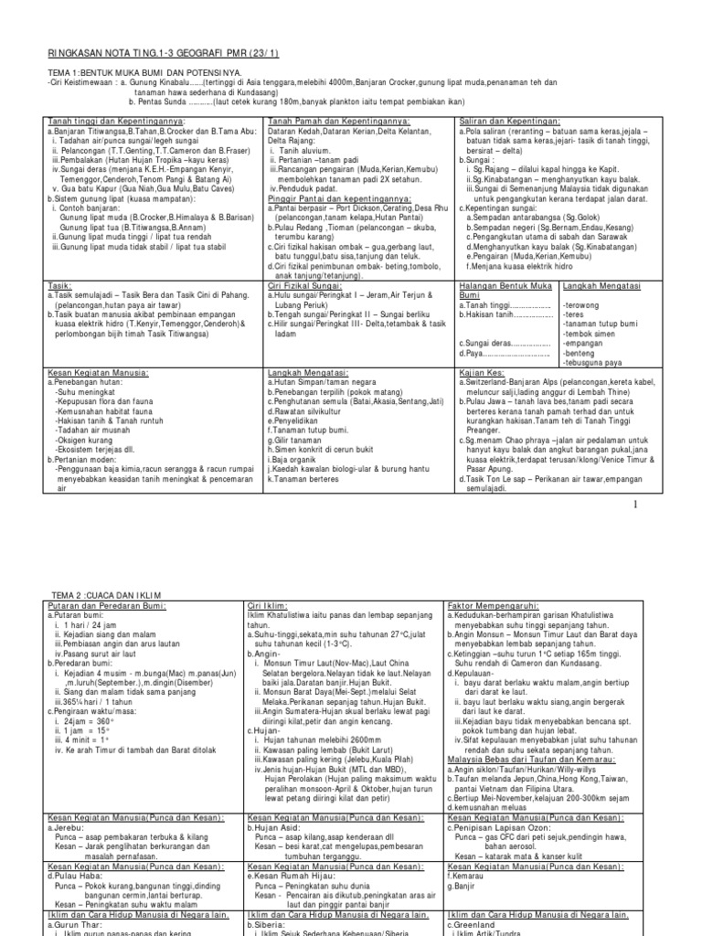 Nota Ringkas Geografi Tingkatan 1 3 Pmr Pdf